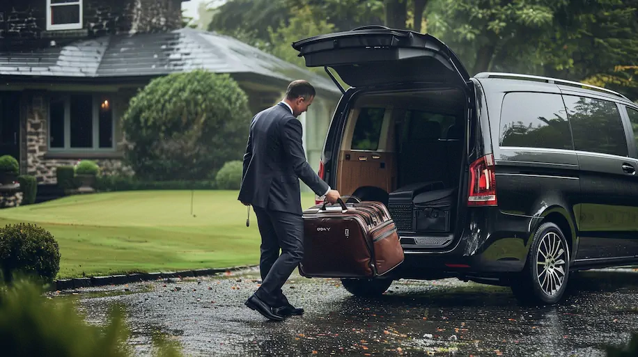 Golf trips require a lot of luggage. Between suitcases and oversized golf bags, space is a premium. Our fleet, particularly the newly introduced Mercedes V-Class (up to 6 passengers), offers expansive trunk space. Your expensive clubs are loaded carefully by your chauffeur and transported securely, ensuring they arrive in pristine condition.
